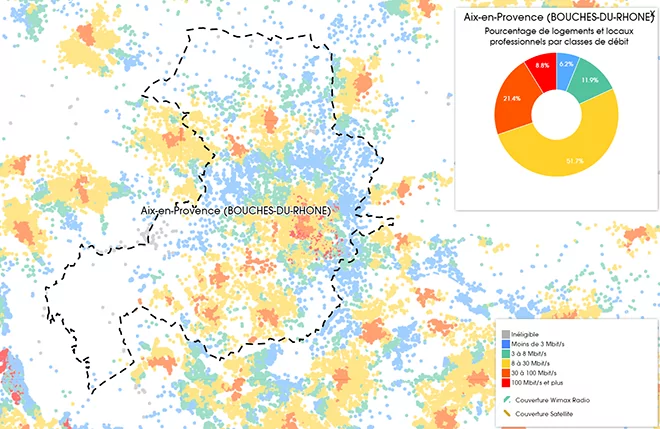Aujourd’hui, grâce aux données fournis par l’Observatoire France Très Haut Débit, nous vous proposons de découvrir le déploiement du très haut débit pour tous les opérateurs sur la 23ème ville la plus peuplées de France, Aix-en-Provence.