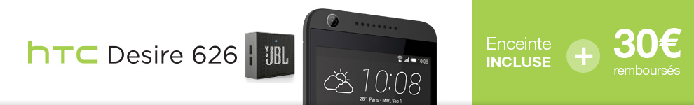 Jusqu’au 31 janvier 2016, HTC vous offre une enceinte JBL Go Bluetooth pour l’achat d’un HTC Desire 626. Par ailleurs, l’offre de remboursement de 30€ est toujours disponible jusqu’au 17 janvier 2016. Le Desire 626 est disponible au tarif de 249€ sur la boutique Free Mobile, soit 219€ avec l’ODR déduite. L’offre de remboursement est ici.