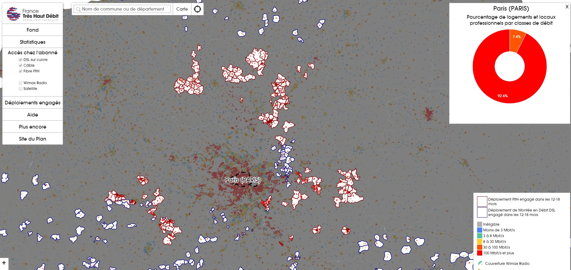 Dans le cadre du Plan France Très Haut Débit, qui prévoit l’installation du très haut débit sur l’entièreté du territoire français en 2022 (via la fibre optique, le VDSL et le câble) un observatoire interactif a été mis en place par le ministère de l’économie sur le site francethd.fr afin de pouvoir suivre l’évolution des avancées en matière de déploiement du très haut débit.