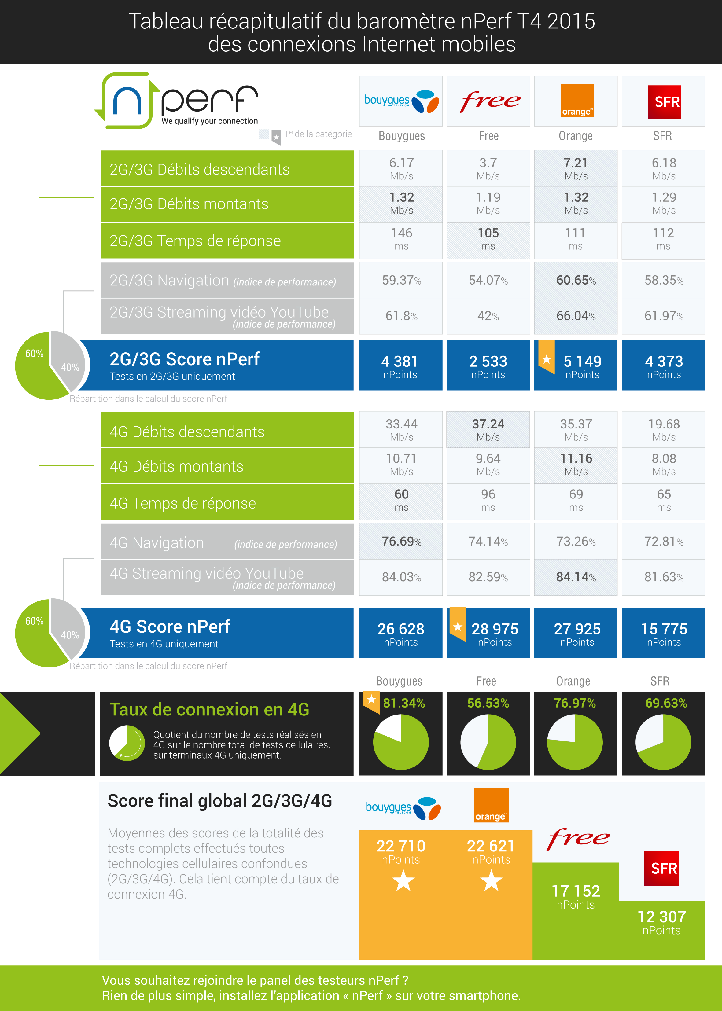 L’infographie de synthèse du baromètre mobile nPerf du 4ème trimestre 2015 :