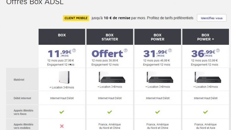 C’est une offre plutôt étonnante qu’a lancé ce matin SFR sur son site internet puisque son offre Box Starter était offerte durant 1 an, au lieu 36,99€ + 3€ de location de box. Des internautes ont eu la confirmation de cette offre par la hotline qui leur a indiqué que le forfait était offert, mais il fallait tout de même s’acquitter de la location de la box à 3€/mois. Par ailleurs, le 1er mois est offert.