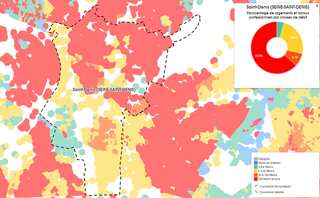 Aujourd’hui, grâce aux données fournis par l’Observatoire France Très Haut Débit, nous vous proposons de découvrir le déploiement du très haut débit pour tous les opérateurs sur la 36ème ville la plus peuplées de France, Saint-Denis.