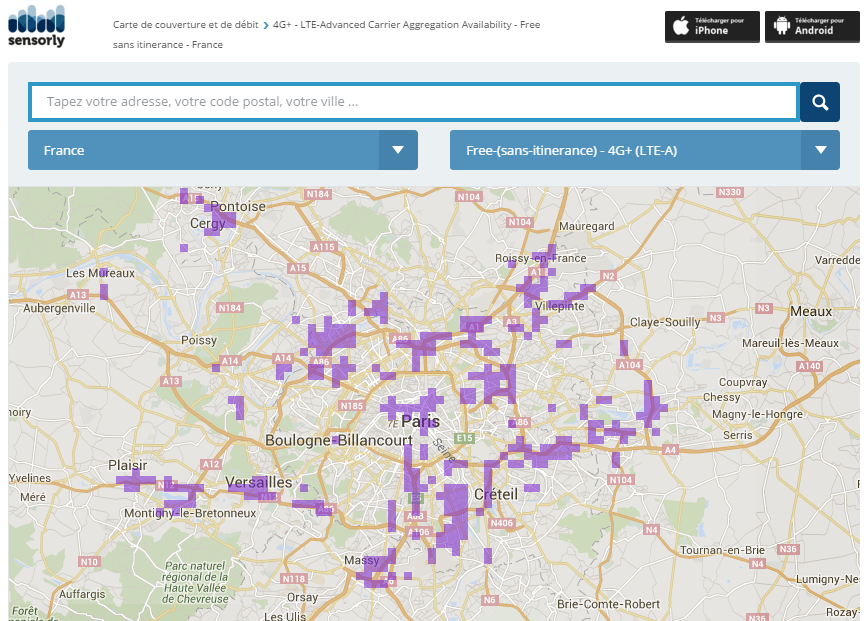 D’après vos nombreux témoignages, Free semble très actif dans le déploiement de la 4G+. Déjà à l’occasion du lancement de la 4G, vous étiez nombreux à nous contacter et des traces de couverture avaient été captées par Sensorly plusieurs mois avant son lancement dans le fief de la R&D de Free Mobile.