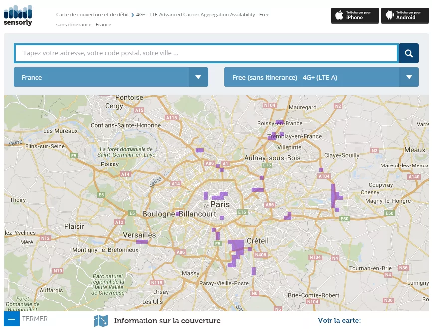 D’après vos nombreux témoignages, Free semble très actif dans le déploiement de la 4G+. Déjà à l’occasion du lancement de la 4G, vous étiez nombreux à nous contacter et des traces de couverture avaient été captées par Sensorly plusieurs mois avant son lancement dans le fief de la R&D de Free Mobile.
