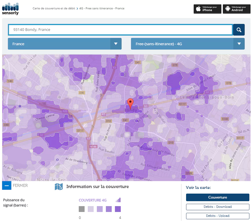 Avec les données de notre partenaire Sensorly, Univers Freebox vous propose un focus sur Bondy, et vous fait découvrir la carte de la couverture du réseau 4G et des débits.