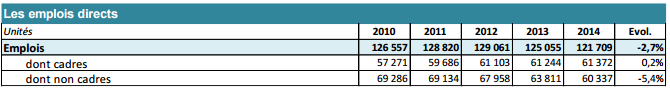 Après environ dix ans de baisse continue, et une amélioration notable entre 2010 et 2012, le niveau d’emploi repart à la baisse depuis 2013. A la fin de l’année 2014, les opérateurs emploient directement 121 700 personnes, soit 3 300 personnes de moins (-2,7%) en un an. La totalité de la baisse est portée par le recul des effectifs non cadres (-5,4%), le nombre de cadres étant pratiquement stable par rapport à 2013 (+0,2%).