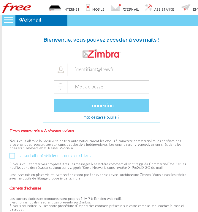 Vous pouvez la découvrir à l’adresse https://zimbra.free.fr/. Comme la dernière fois, l’interface même du webmail Zimbra reste identique, seule la page d’authentification a été relookée.
