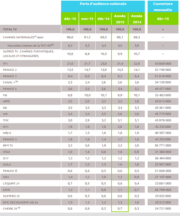 France Télévisions dépasse le groupe TF1 dans les audiences de l’année 2015
