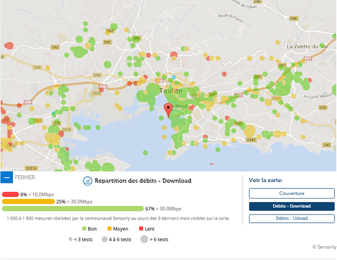 Avec les données de notre partenaire Sensorly, Univers Freebox vous propose un focus sur Toulon, 15ème ville de France par sa population et vous fait découvrir la carte de la couverture du réseau 4G et des débits.