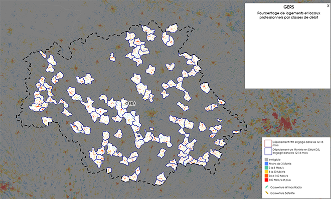 Bien que de nombreux déploiements soient engagés dans le Gers, ils le sont uniquement pour une montée en débit DSL. Aucun déploiement FTTH n’est prévu pour l’instant dans les 12-18 mois dans le département du Gers.