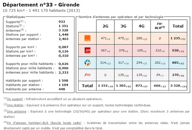 Univers Freebox vous propose, via le site Couverture Mobile, un tableau comparatif du nombre d’antennes déployées en Gironde, par les différents opérateurs.