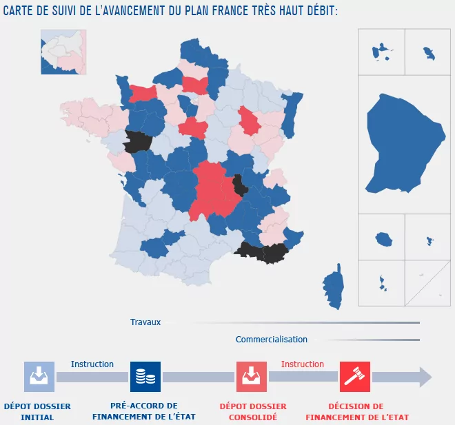 Le site France THD, rapporte que fin décembre 2015, le 1er ministre a décidé d’un accord préalable de principe pour le financement de quatre projets dans le cadre du Plan France Très Haut Débit.