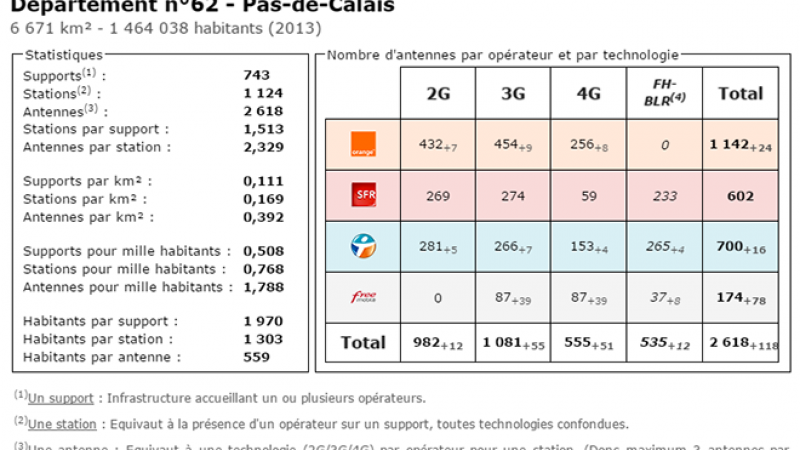 Univers Freebox vous propose, via le site Couverture Mobile, un tableau comparatif du nombre d’antenne déployé dans le Pas-de-Calais, par les différents opérateurs.