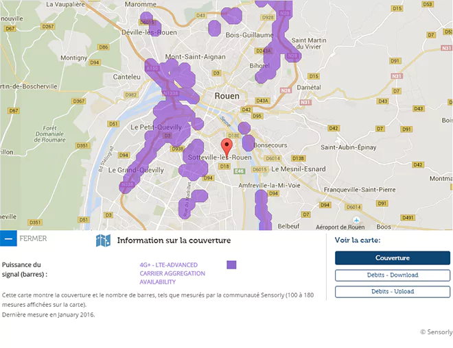 Avec les données de notre partenaire Sensorly, Univers Freebox vous propose un focus sur Rouen, 35ème ville de France par sa population et vous fait découvrir la carte de la couverture du réseau 4G+ et des débits.