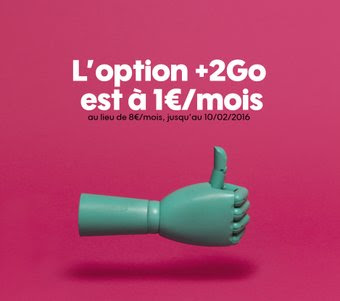 Si vous détenez déjà une option +2Go, il vous suffit de souscrire à l’option à 1€ dans votre espace client pour profiter de ce tarif préférentiel au lieu de 8€ / mois.