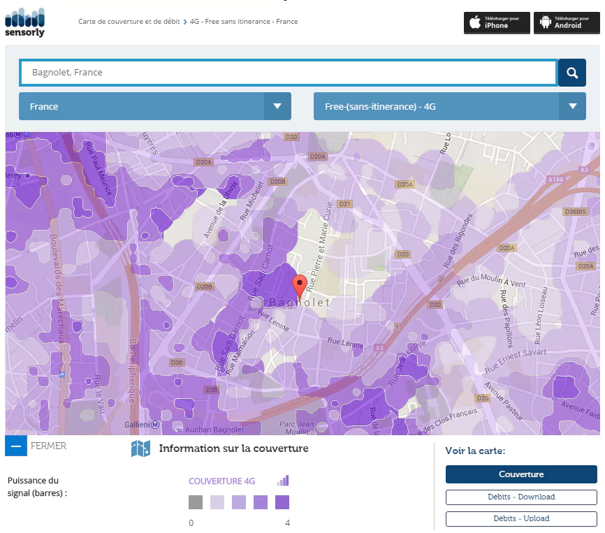 Avec les données de notre partenaire Sensorly, Univers Freebox vous propose un focus sur Bagnolet, et vous fait découvrir la carte de la couverture du réseau 4G et des débits.