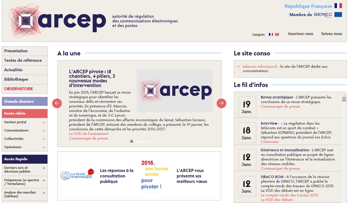 C’est également un tournant pour l’ARCEP qui s’est doté pour l’occasion d’un nouveau logo, mais aussi d’un nouveau site web depuis plus clair, reprenant notamment les couleurs du logo (ceux qui consultent régulièrement le site de l’Autorité ne seront pas perdus. La présentation, dossiers, le fil d’informations et les autres rubriques du site n’ont pas bougé de place).