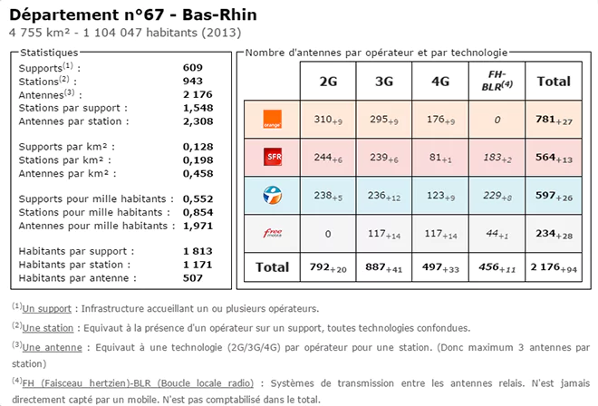 Univers Freebox vous propose, via le site Couverture Mobile, un tableau comparatif du nombre d’antennes déployées dans le Bas-Rhin, par les différents opérateurs.