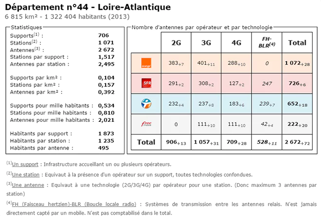 Univers Freebox vous propose, via le site Couverture Mobile, un tableau comparatif du nombre d’antennes déployées en Loire-Atlantique, par les différents opérateurs.
