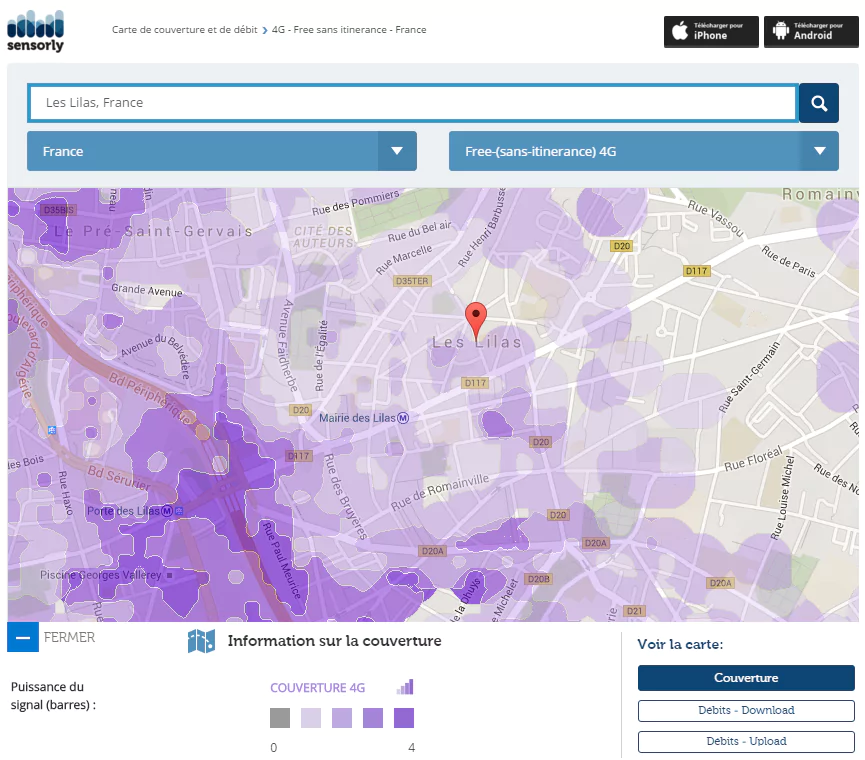 Avec les données de notre partenaire Sensorly, Univers Freebox vous propose un focus sur Les Lilas, et vous fait découvrir la carte de la couverture du réseau 4G et des débits.