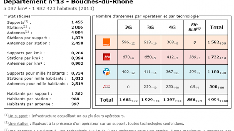 Univers Freebox vous propose, via le site Couverture Mobile, un tableau comparatif du nombre d’antennes déployées dans les Bouches-du-Rhône, par les différents opérateurs.