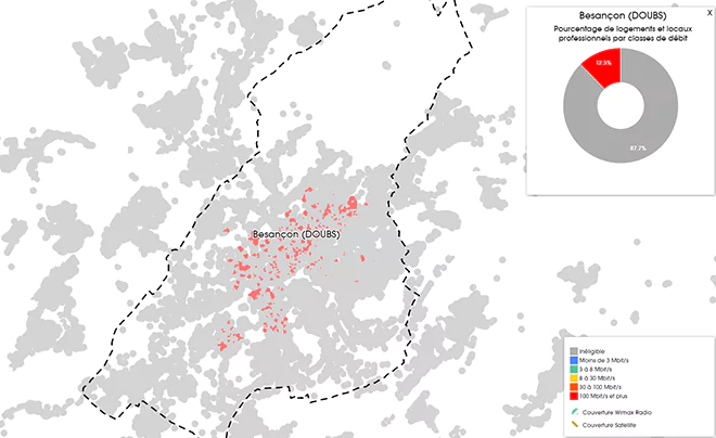 Aujourd’hui, grâce aux données fournis par l’Observatoire France Très Haut Débit, nous vous proposons de découvrir le déploiement du très haut débit pour tous les opérateurs sur la 31ème ville la plus peuplées de France, Besançon.