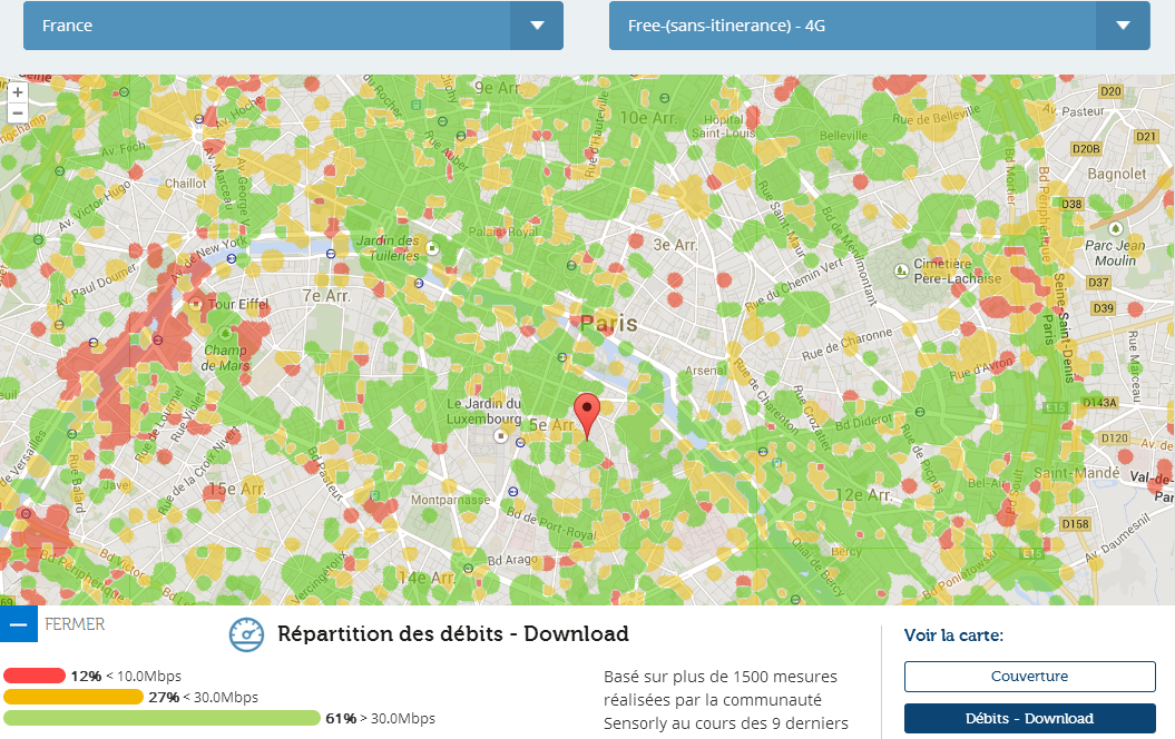 Vous pouvez également télécharger l’application Sensorly, disponible sur Android et iOS, afin de devenir un contributeur, permettant d’améliorer constamment les données relevées sur l’application, mais aussi réaliser des tests de débits de votre connexion, consulter l’historique de vos tests, etc. :