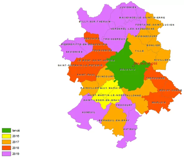 Des travaux de déploiement sont actuellement en cours à Beauvais, Aux-Marais, Saint-Léger-en-Bray et Saint-Martin-le-Nœud. Au total, près de 37 000 logements et locaux professionnels seront ainsi éligibles aux offres "Fibre de SFR" et pourront profiter d’un accès à Très Haut Débit.