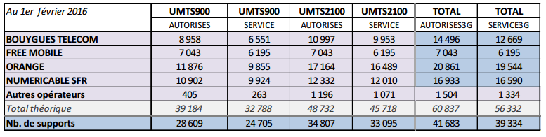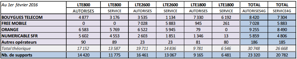Le bilan des sites 4G mis en service en métropole s’établit comme suit selon l’ANFR :