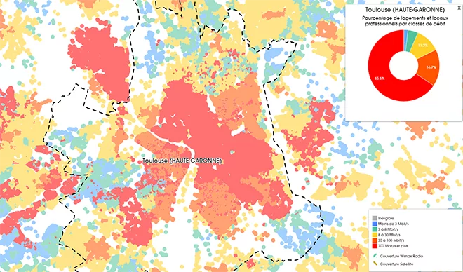 Aujourd’hui, grâce aux données fournis par l’Observatoire France Très Haut Débit, nous vous proposons de découvrir le déploiement du très haut débit pour tous les opérateurs sur la 4ème ville la plus peuplées de France, Toulouse.