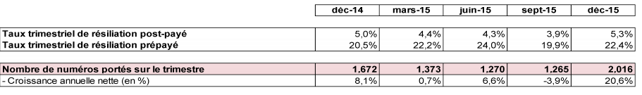 Record des portabilités au 4ème trimestre 2015 depuis le lancement de Free Mobile