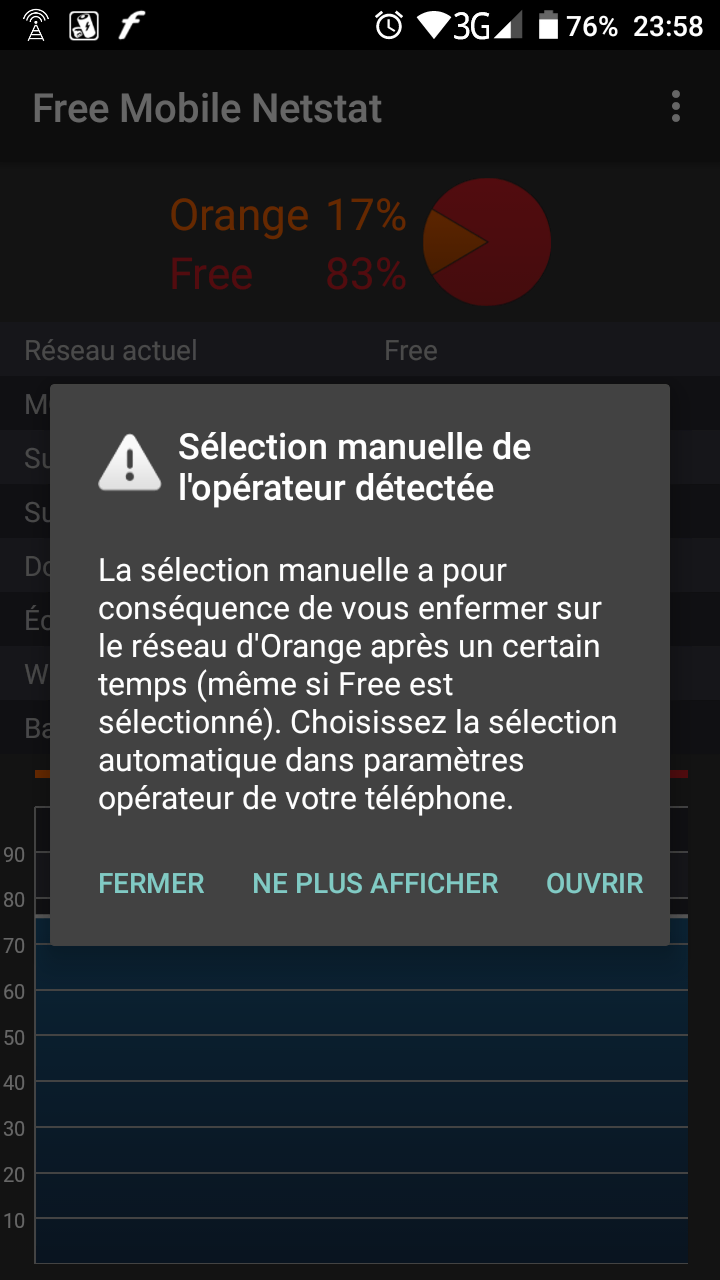 Pluie de nouveautés, d’améliorations et de corrections sur Free Mobile Netstat ! Estampillée 2.3.1, une nouvelle version de l’application a été déployée. Celle-ci apporte les évolutions suivantes :
