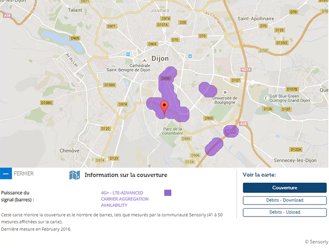 La 4G+ de Free Mobile arrive petit à petit sur la ville de Dijon. Vous pouvez dès à présent compléter la carte grâce à l’application de notre partenaire Sensorly.