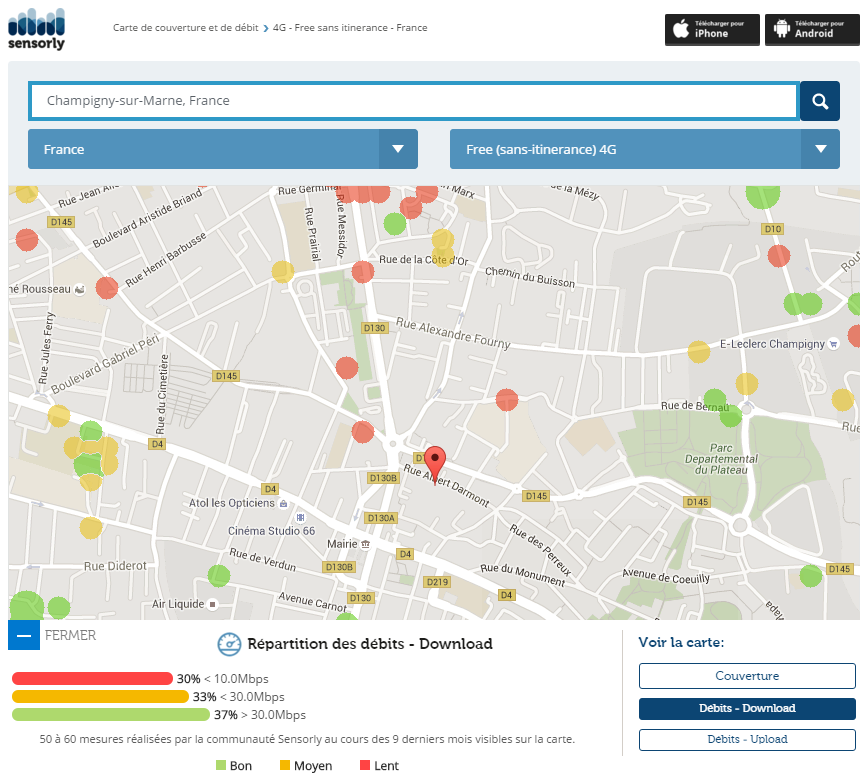 En partenariat avec Sensorly, l’application spécialisée dans la cartographie des couvertures de réseaux mobile, Univers Freebox continue son tour de France et vous propose un focus sur le réseau mobile de Free à Champigny-sur-Marne, commune de 76 000 habitants dans le Val-de-Marne.