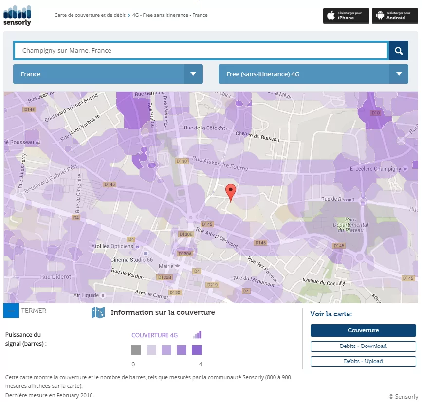 En partenariat avec Sensorly, l’application spécialisée dans la cartographie des couvertures de réseaux mobile, Univers Freebox continue son tour de France et vous propose un focus sur le réseau mobile de Free à Champigny-sur-Marne, commune de 76 000 habitants dans le Val-de-Marne.