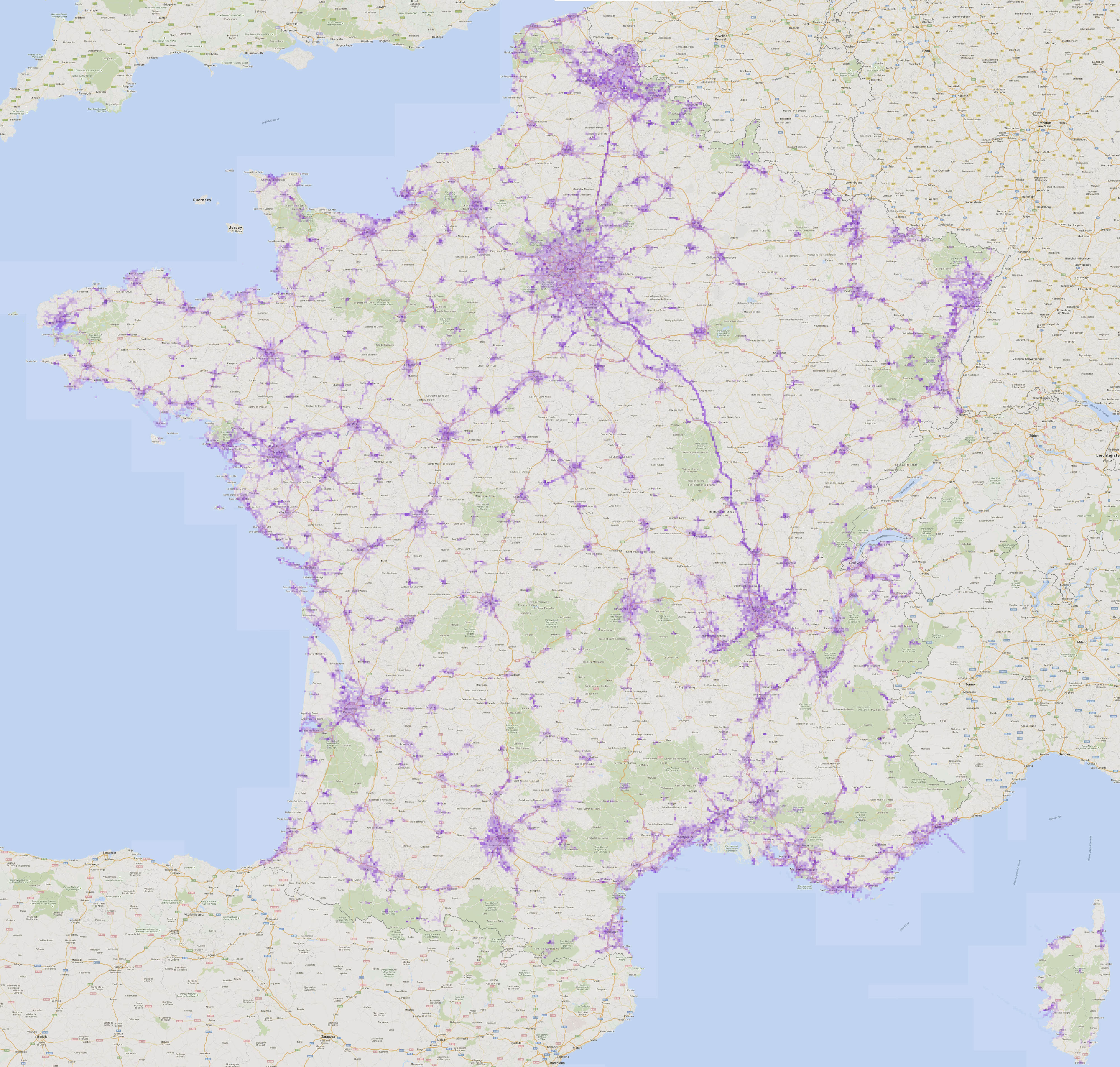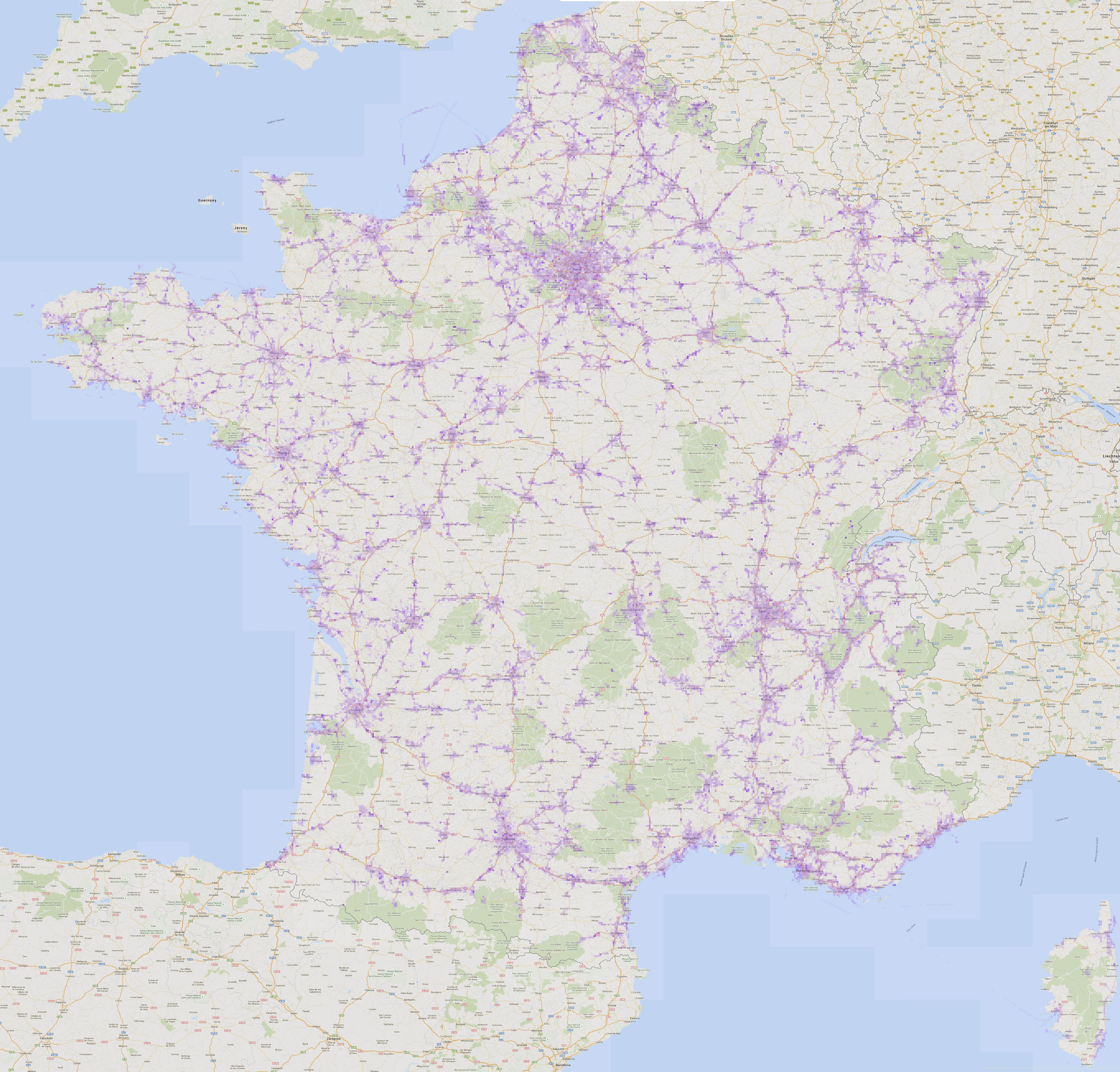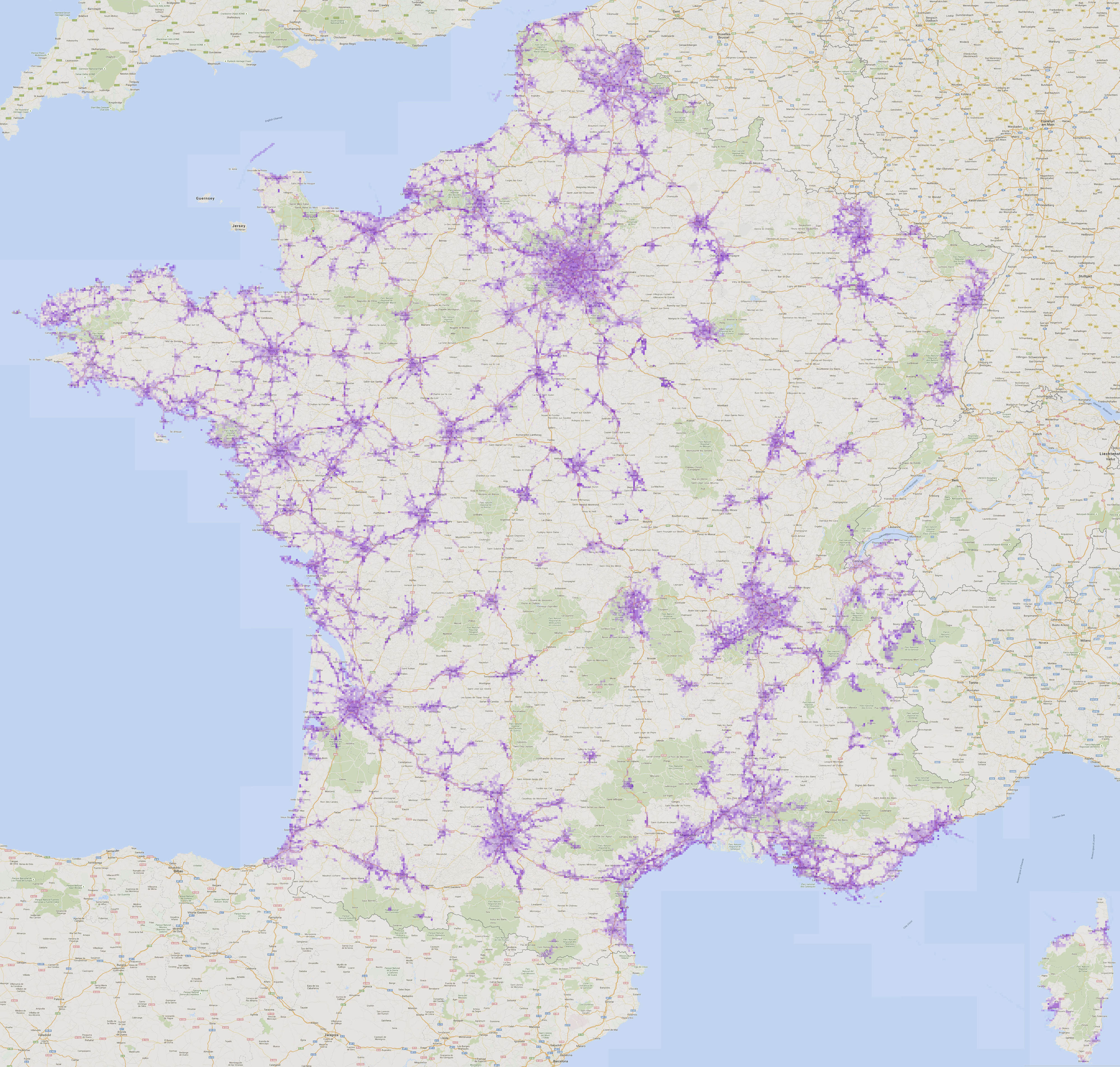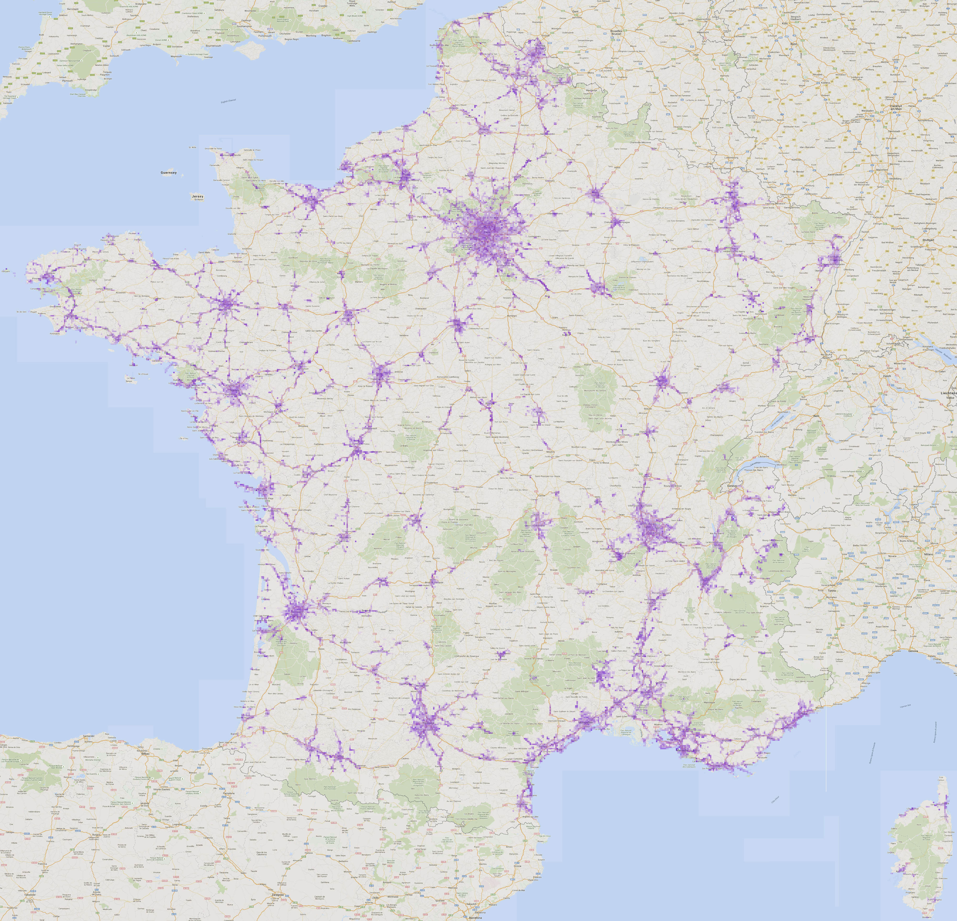 Afin de pouvoir comparer la couverture des 4 opérateurs en ce mois février 2016, Sébastien Lemaitre, un lecteur d’Univers Freebox, a réalisé un gros travail en utilisant les cartes de couverture 4G de notre partenaire Sensorly. Celles-ci sont réalisées à partir de centaines de milliers de mesures réelles sur le terrain. Cependant il n’est pas possible d’avoir une vision précise de la couverture nationale 4G des opérateurs, les pixels étant trop gros. Sébastien a donc fait des capture avec un zoom et une précision plus importante, puis a assemblé toutes ces captures pour refaire des cartes nationale de la couverture 4G de chaque opérateur. Il en résulte des cartes de 4000 pixels de large qui permettent de comparer la couverture 4G des différents opérateurs.