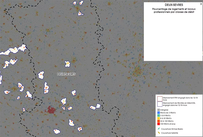 Grâce aux données fournis par l’Observatoire Très Haut Débit, Univers Freebox vous propose de découvrir la carte des déploiements engagés pour le très haut débit sur le département de les Deux-Sèvres.