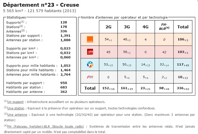 Univers Freebox vous propose, via le site Couverture Mobile, un tableau comparatif du nombre d’antennes déployées dans la Creuse, par les différents opérateurs.