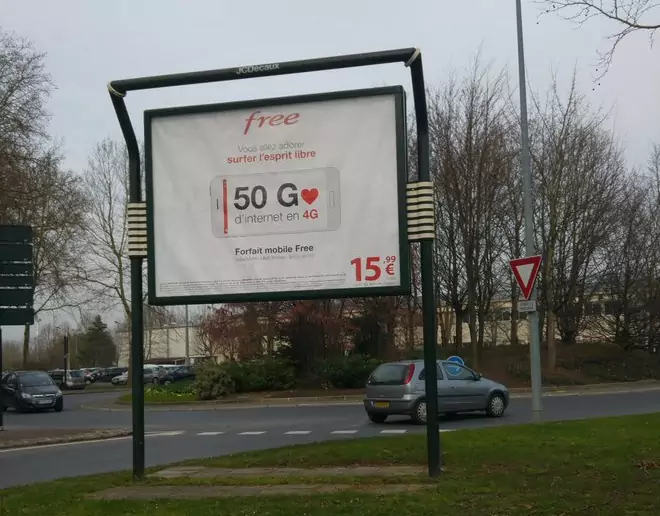 Nous vous annoncions hier que Free Mobile lançait une nouvelle campagne d’affichage. La première de ces affiches montrait la place de N°1 de Free Mobile en ce qui concerne le débit 4G. Sur Twitter, Quentin a publié la seconde affiche, qui met cette fois en avant les 50Go de data en 4G inclus dans forfait illimité de Free.