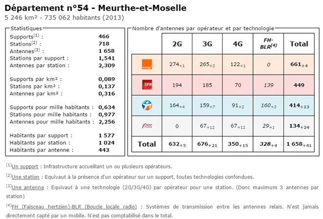Univers Freebox vous propose, via le site Couverture Mobile, un tableau comparatif du nombre d’antennes déployées dans la Meurthe-et-Moselle, par les différents opérateurs.