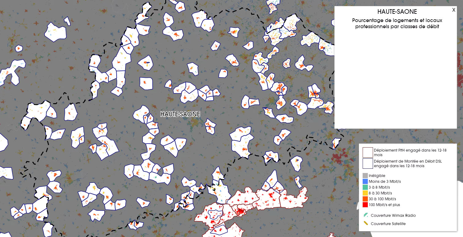 Beaucoup de déploiements sont engagés dans les 12-18 mois en Haute-Saône. Tout ces déploiements concernent une montée en débit DSL.
