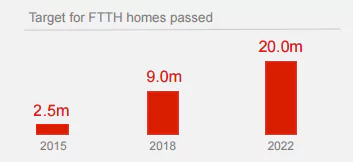 L’opérateur indique qu’il va passer de 2,5 millions de foyers raccordés en 2015, à 9 millions en 2018 et à 20 millions en 2022.