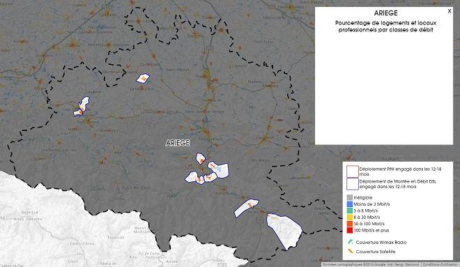 Peu de déploiements sont actuellement engagés dans les 12-18 mois pour le département de l’Ariège. Ces déploiement concernent uniquement une montée en débit DSL.