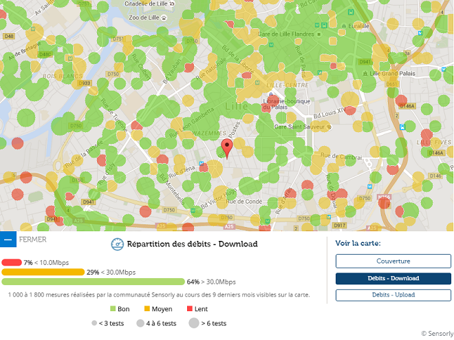 Avec les données de notre partenaire Sensorly, Univers Freebox vous propose un focus sur Lille, 10ème ville de France par sa population et vous fait découvrir la carte de la couverture du réseau 4G et des débits.