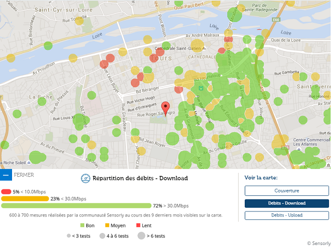 Avec les données de notre partenaire Sensorly, Univers Freebox vous propose un focus sur Tours, 27ème ville de France par sa population et vous fait découvrir la carte de la couverture du réseau 4G et des débits.
