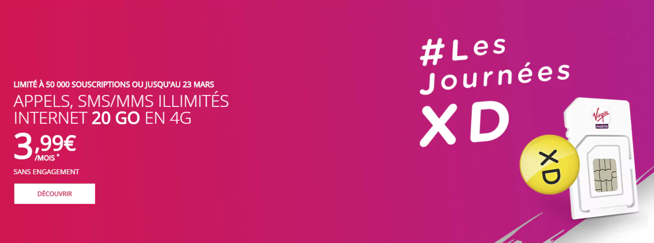 Allez, on prend les mêmes et on recommence. Après le showroomprivé de RED de SFR, Virgin Mobile lance également plusieurs offres promotionnelles dans le cadre des « Journées XD ».