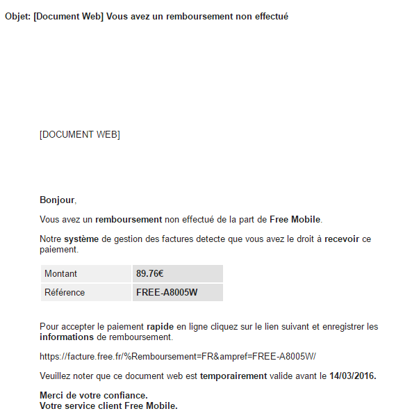 Un nouveau phishing promet aux abonnés Free Mobile un remboursement de leur facture