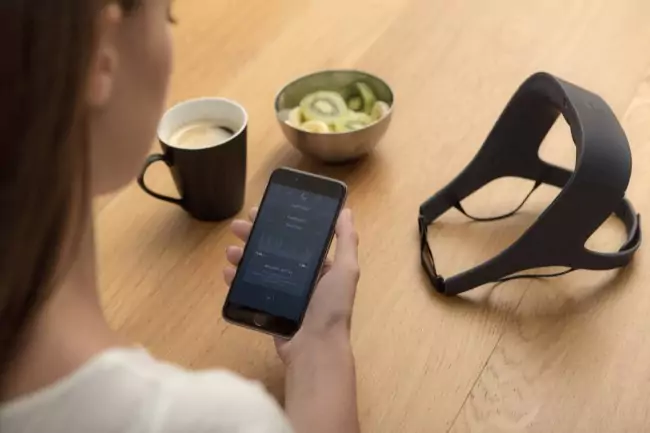 L’entreprise parisienne Rythm, fondée en 2014, a conçu un casque à porter la nuit avec comme objectif de pouvoir améliorer la qualité du sommeil de ses utilisateurs. Vendu au prix de 350 euros et baptisé Dreem, il intègre trois électrodes sur l’arrière du crâne afin de mesurer l’activité cérébrale en temps réel, ce qui permet de savoir dans quelle phase de sommeil se trouve la personne. Un algorithme analyse par la suite les données et décide à quel moment envoyé des petites stimulations sonores afin d’améliorer le sommeil de l’usager :