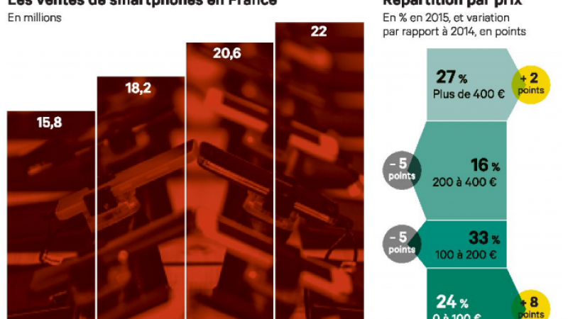 Alors que la majorité des pays développés voient leurs ventes de smartphones se stabiliser, la croissance du marché des smartphones continue sa progression : + 13 % en volume par rapport à 2014. Selon une étude du cabinet GfK, plus de 20 millions de « téléphones intelligents » se sont vendus dans l’hexagone l’année dernière. Mais selon Michael Matthieu, analyste au sein de ce cabinet d’audit mercatique, la France est encore en décalage par rapport à ses voisins européens :