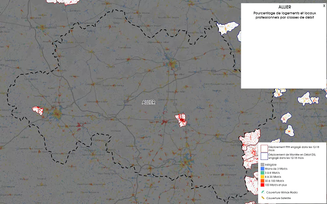 Grâce aux données fournis par l’Observatoire Très Haut Débit, Univers Freebox vous propose de découvrir la carte des déploiements engagés pour le très haut débit sur le département de l’Allier.